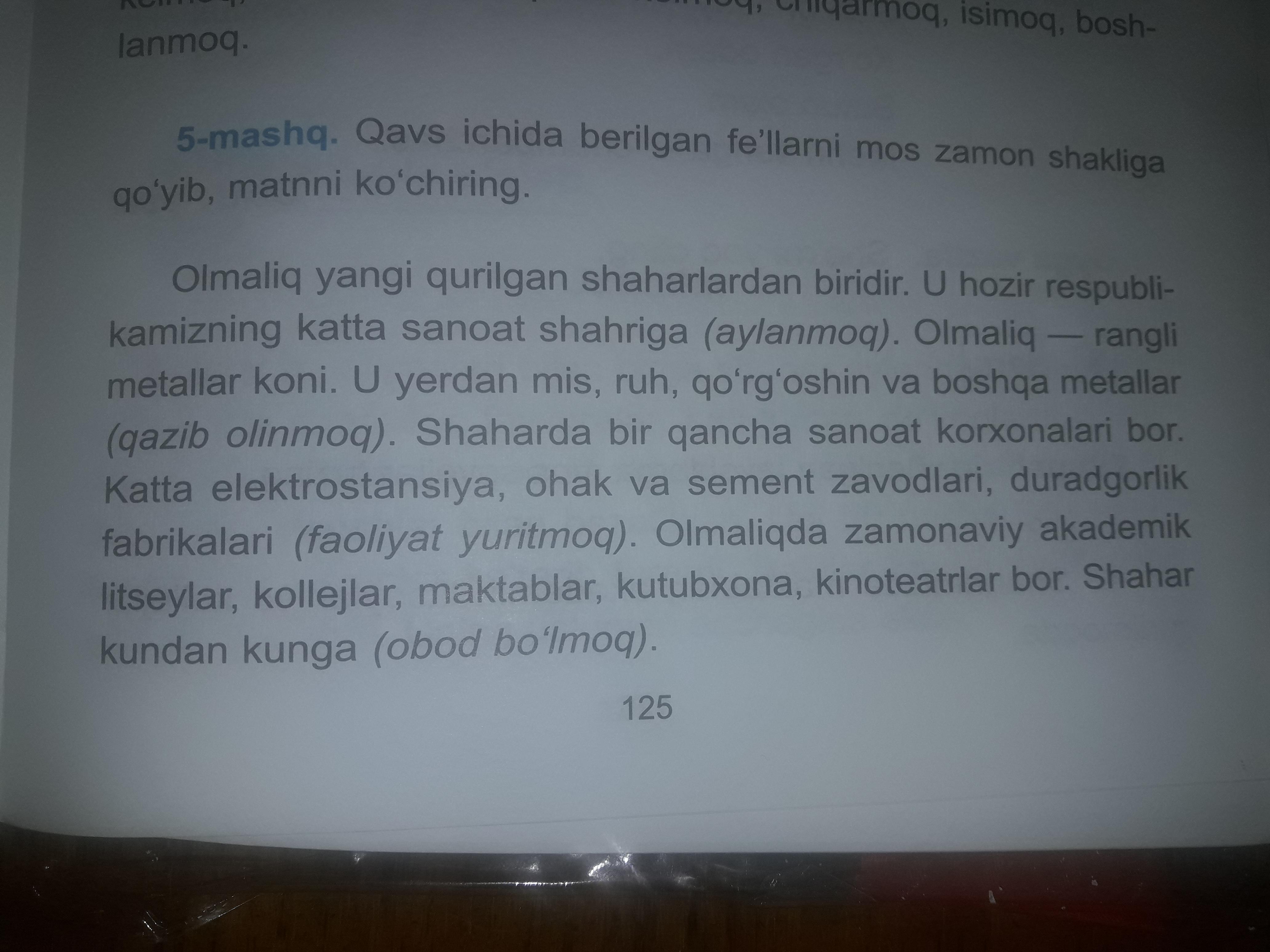 Qavs ichida berilgan fe‘llarni mos zamon shakliga qo‘yib,matnni ko‘chiring помогите пожалуйста!!!!!!!!!