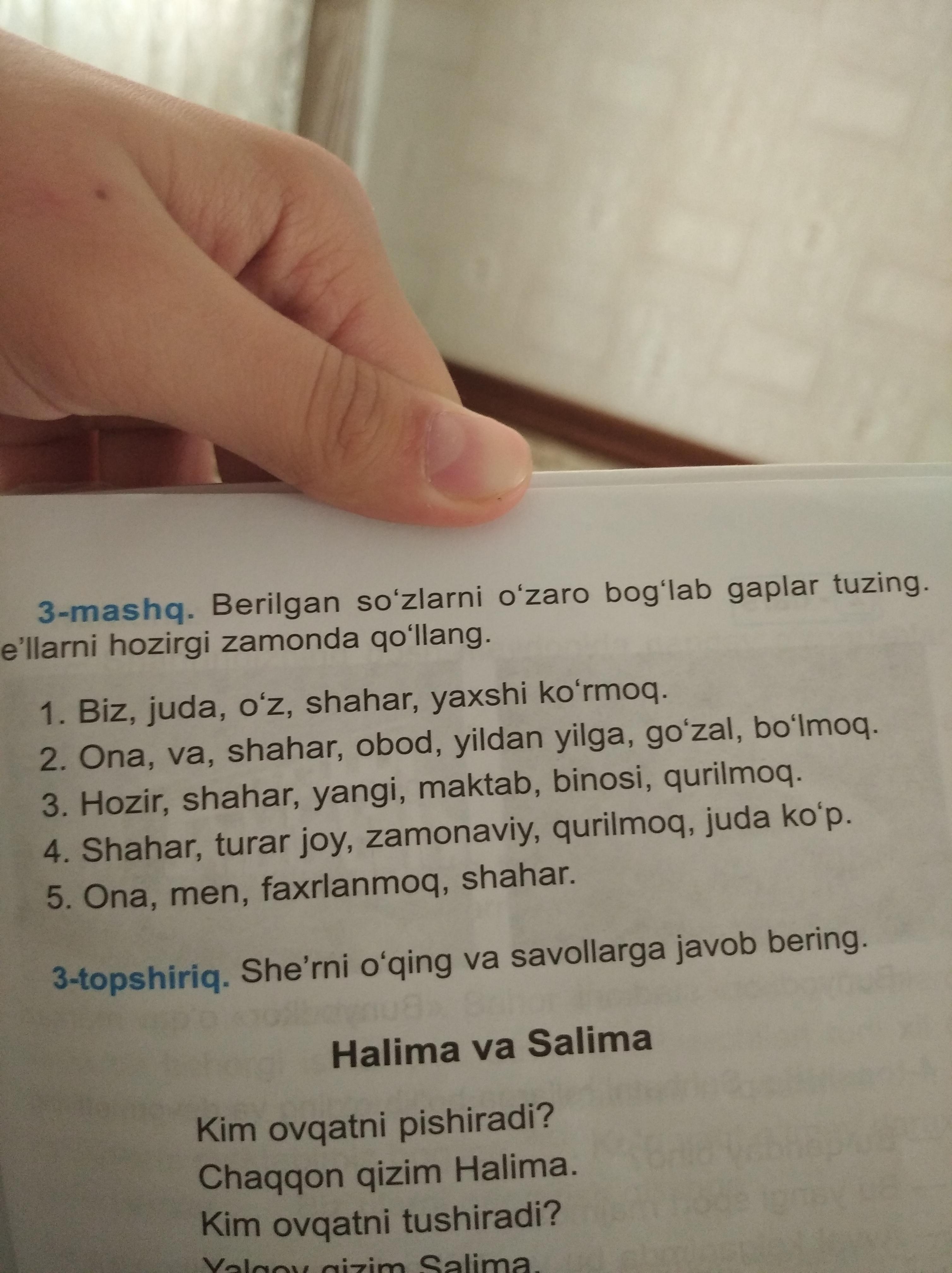 3Hozir shaxrimizda yangi maktab va binolar qurilgan.