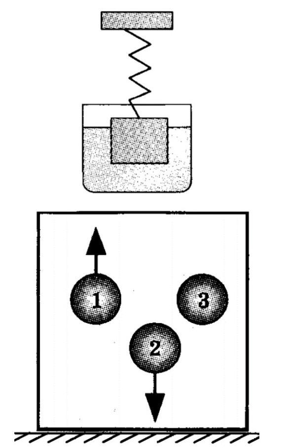 посудині з рідиною. При піднятті тіла з посудини розтягнення пружини