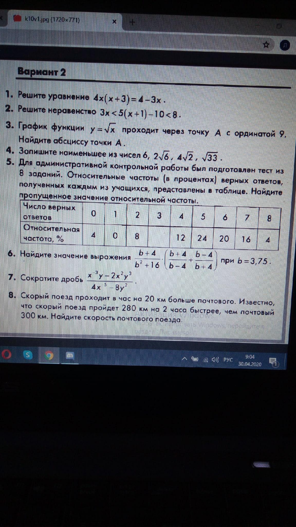8. Пусть x км/час - скорость почтового поезда. Тогда скорость скорого поезда - (x + 20) км/час.