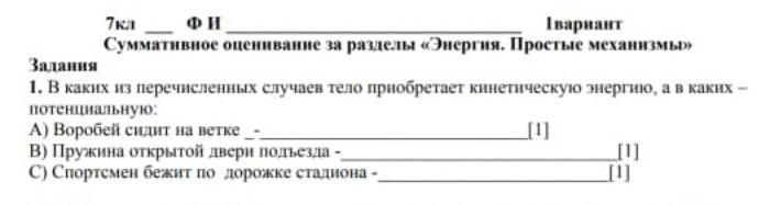 в каких из многочисленных случаев тело преобретает кинетическую энергию,а какие потенциальную 1вариант