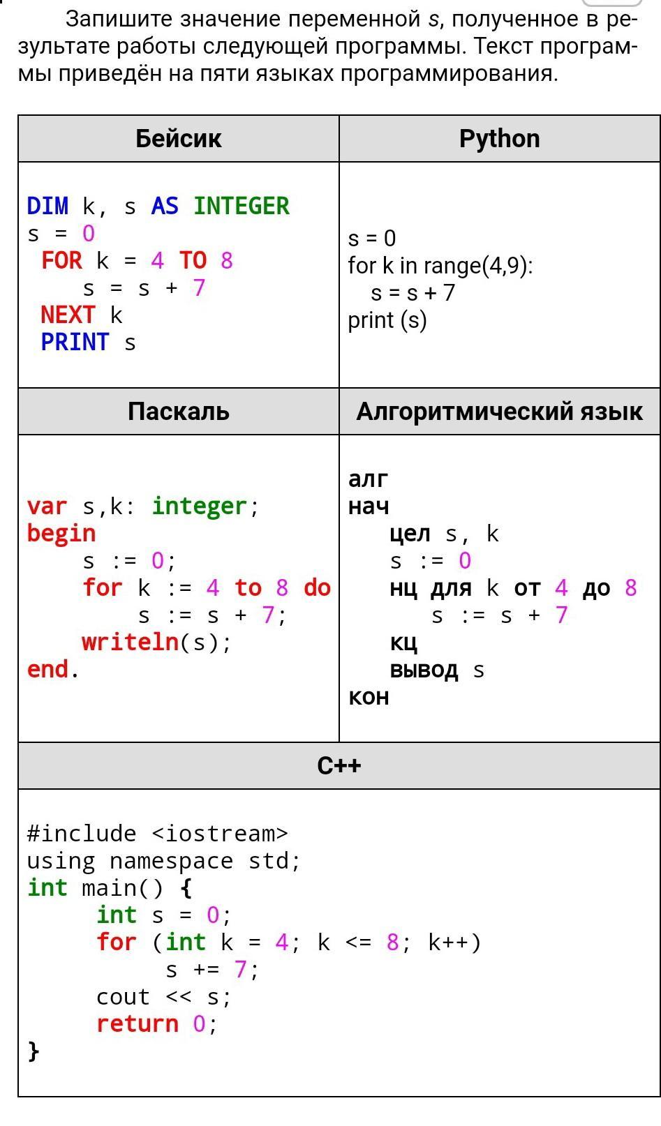 1) s:=0+7=7