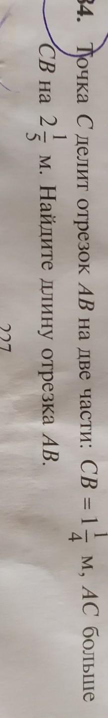 Т.к. АС больше СВ на 2 1/5, то АС = 1 1/4 + 2 1/5 = 3 9/20(м)