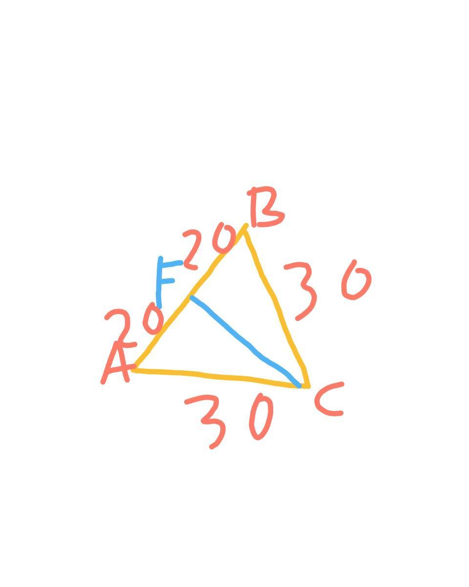 Медиана треугольника делит сторону на две равные части если FA=20 то ВА=20+20=40дм