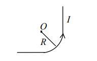 По бесконечно длинному тонкому проводу, изогнутому так, как показано на рисунке, течет ток I. Радиус четверти окружности в месте изгиба равен R. Определите индукцию B магнитного поля в точке O. Можно, пожалуйста, с подробным решением?