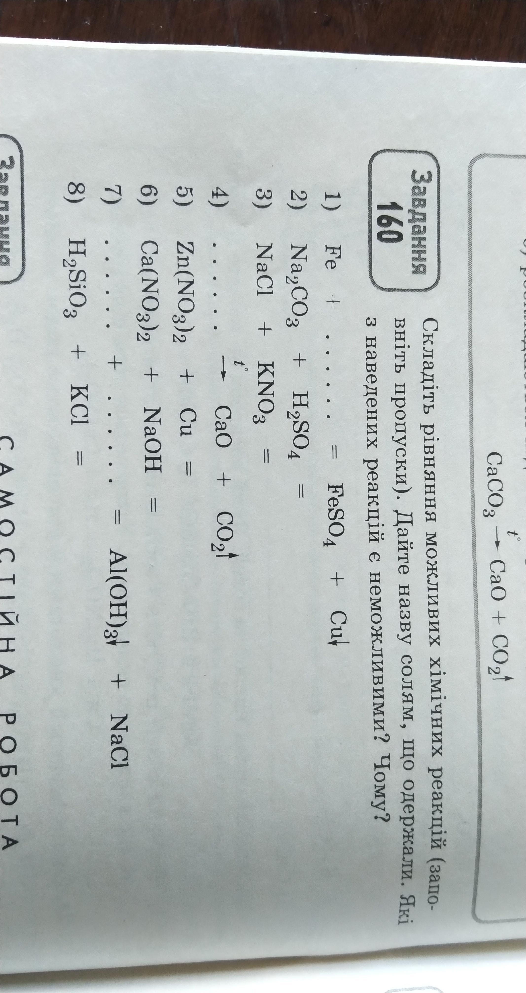 Номер задания 160). Составить уравнение возможных химических реакций . Дайте название солям , которые получили.