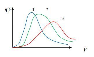 В трех одинаковых сосудах находится одинаковое количество газа, причем Т1>Т2>Т3. Распределение скоростей молекул в сосуде с температурой Т1 будет описывать кривая…