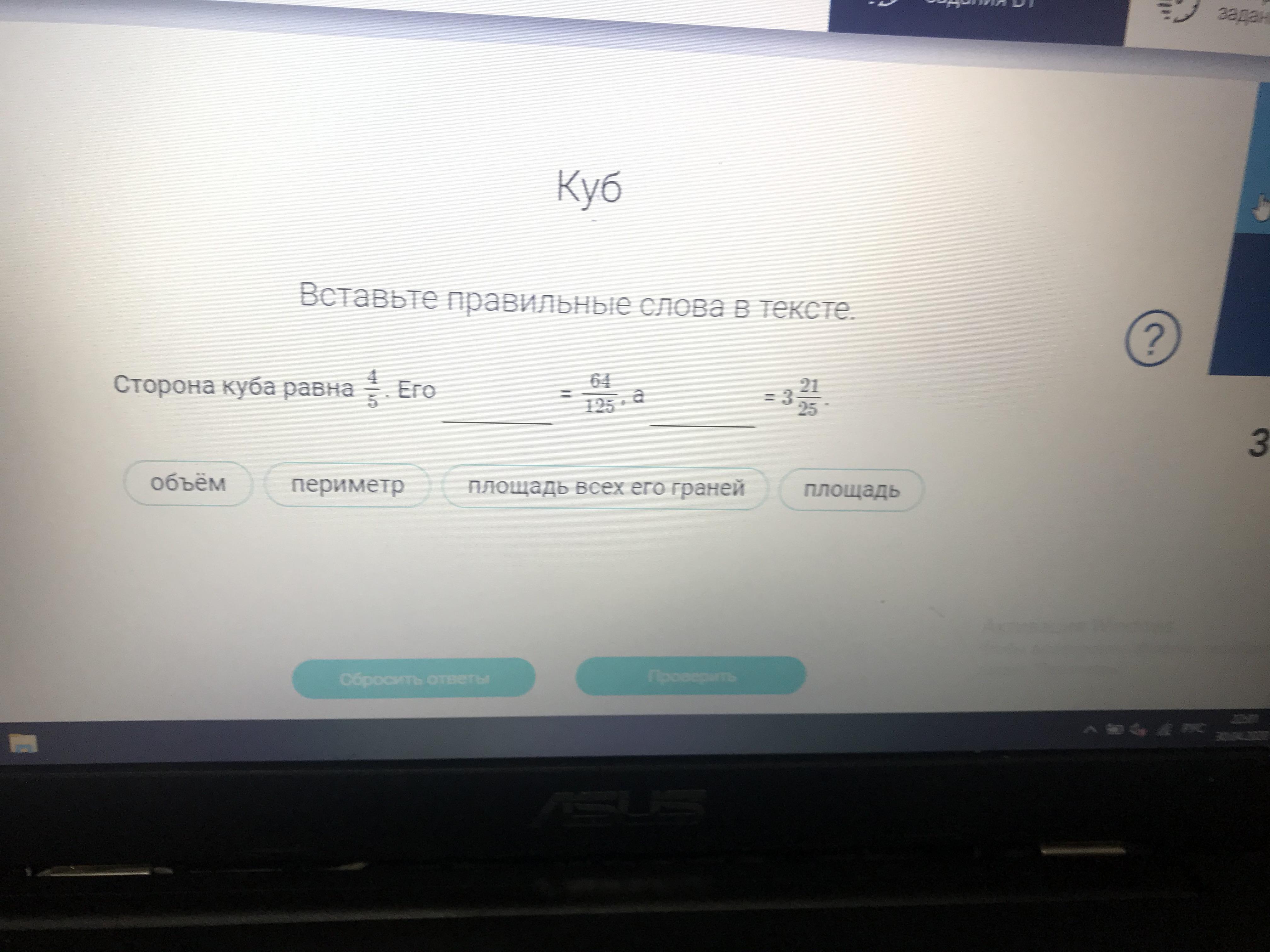 обьем = 64/125,,,, площадь всех граней = 3*21/25