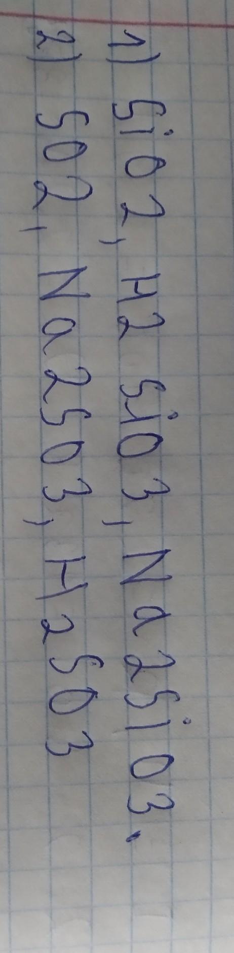 1. SiO2, H2SiO3, Na2SiO3