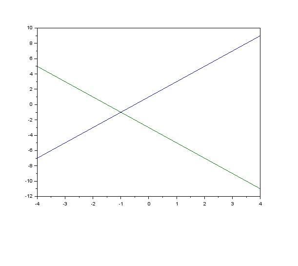График нарисован в Scilab, решение - точка (-1,-1)