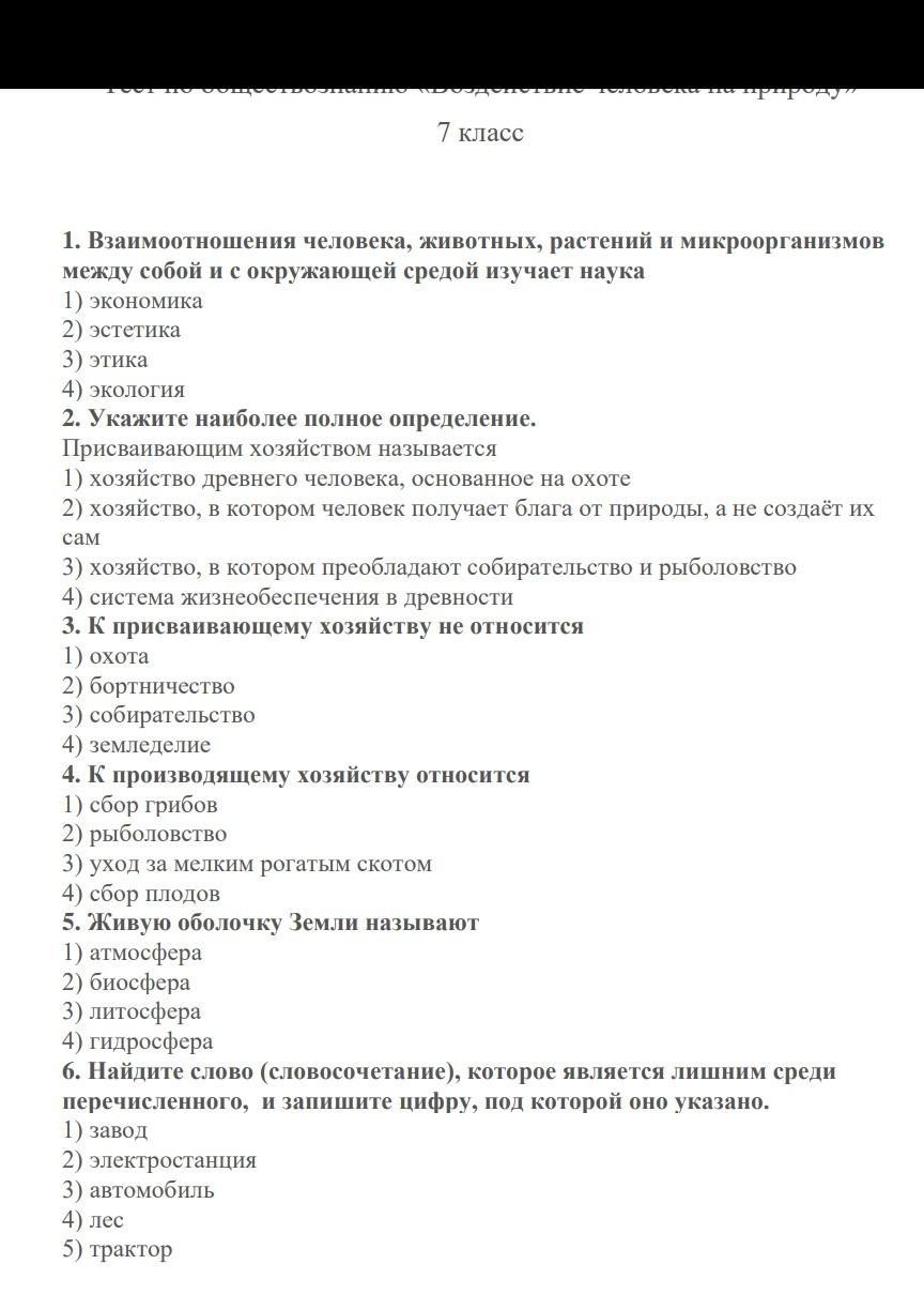 1) экономика 2) эстетика 3) этика 4) экология ОТВЕТ: экология