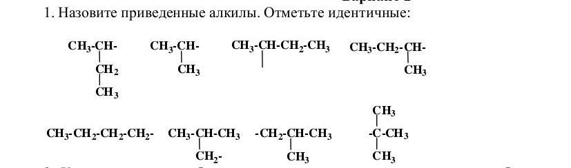 Назовите приведенные алкилы. Отметьте идентичные:​