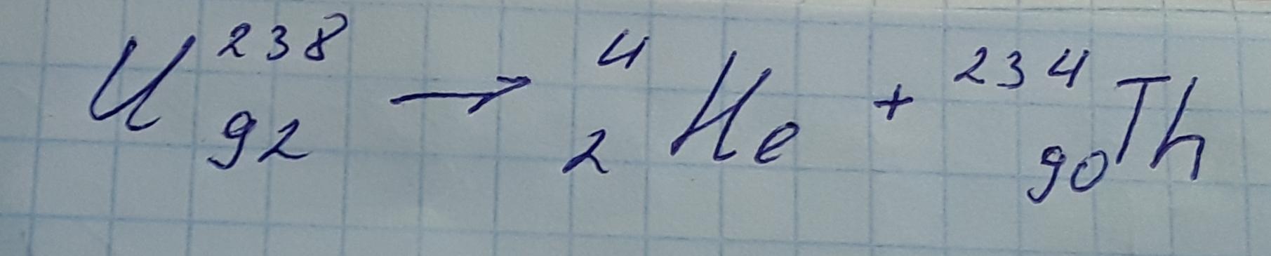 В результате какого радиоактивного распада уран U-238 превращается в торий Th-234. Запишите эту реакцию.