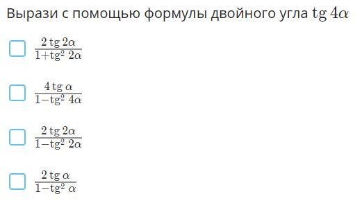tg4α=sin4α/cos4α=sin2(2α)/cos2(2α)=2sin2αcos2α/(cos²2α-sin²2α)