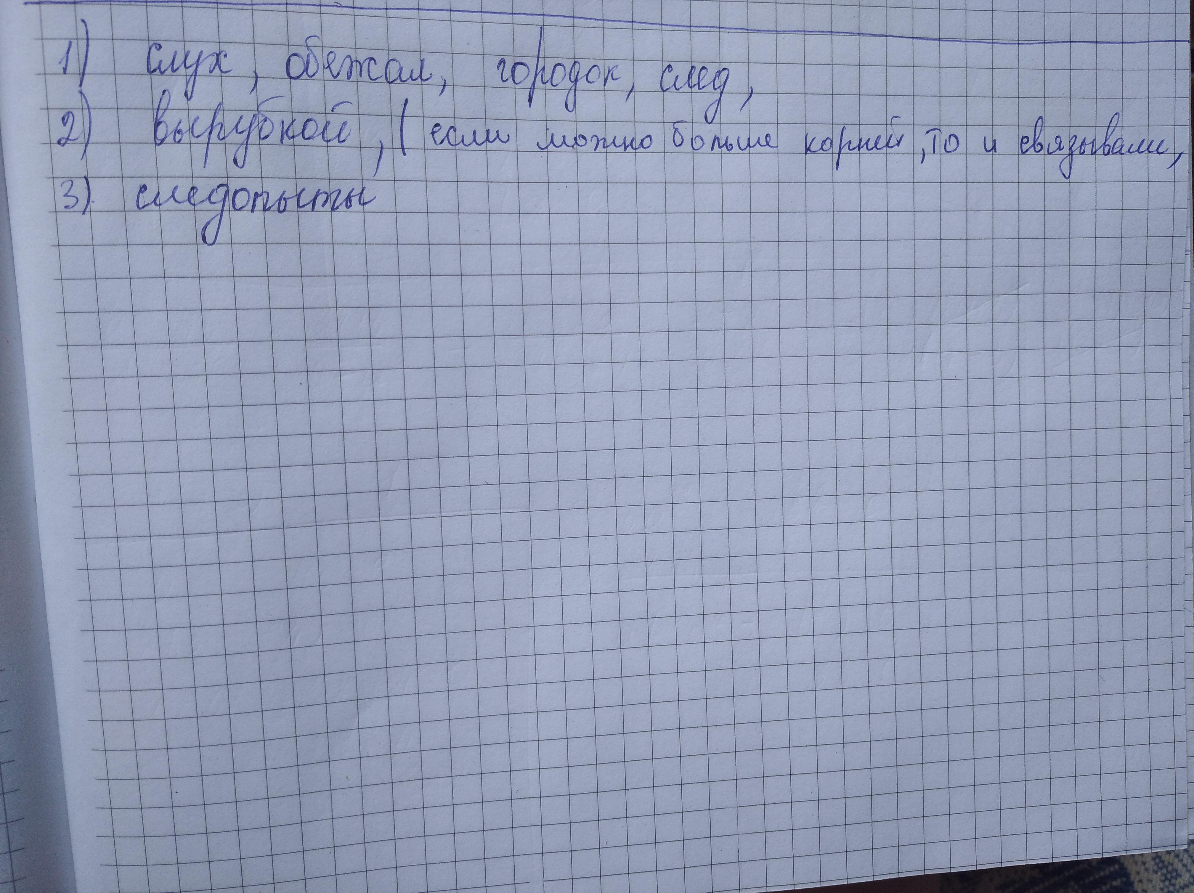 работа с текстом:1)охотники осенью жаловались что пропали зайцы 2)некоторые связывали исчезновение зайцев с вырубкой леса 3)слух о зайцах мгновенно обежал весь городок 4)но следопыты быстро взяли заячий след и вышли к кустарнику где увидели косых.