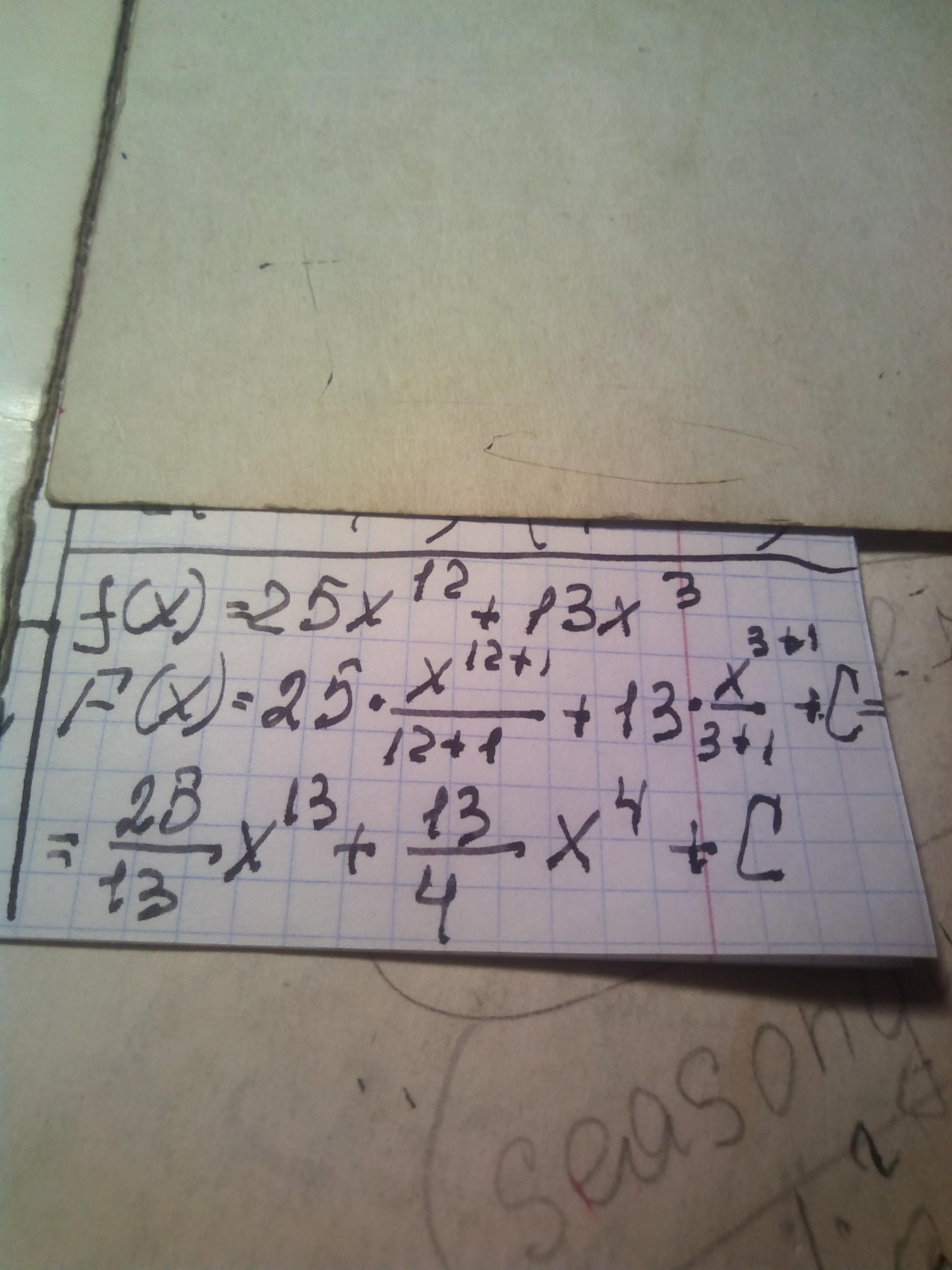 если что , то формула для интегрирования степенной функции : (x^n)dx = x^(n+1)/(n+1) +С