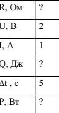 Резистор сопротивлением R включен в сеть напряжением U, через него проходит ток I. За время ∆t выделяется энергия Q. Мощность Р. Определите значения величин, обозначенных «?».