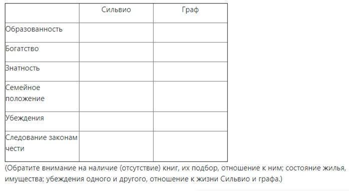 Помогите! А. С. Пушкин Выстрел Заполните таблицу