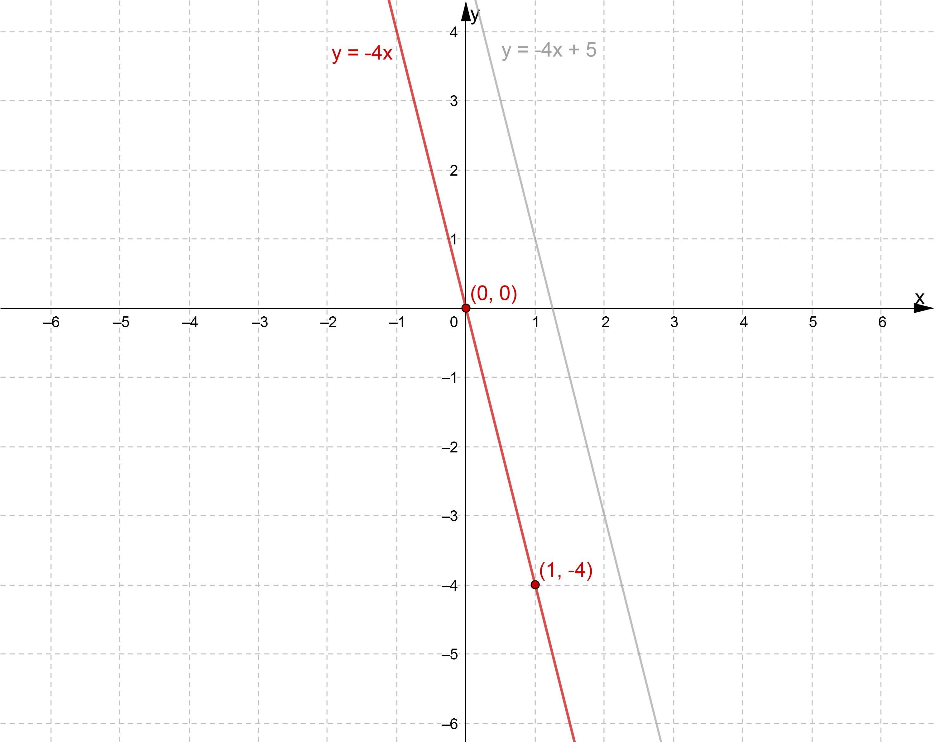 Т.к. искомая линейная функция параллельна заданной, ее угловой коэффициент будет таким же (k = −4). Линейная функция, проходящая через начало координат (0; 0) — прямая пропорциональность — имеет вид y=kx (b=0).