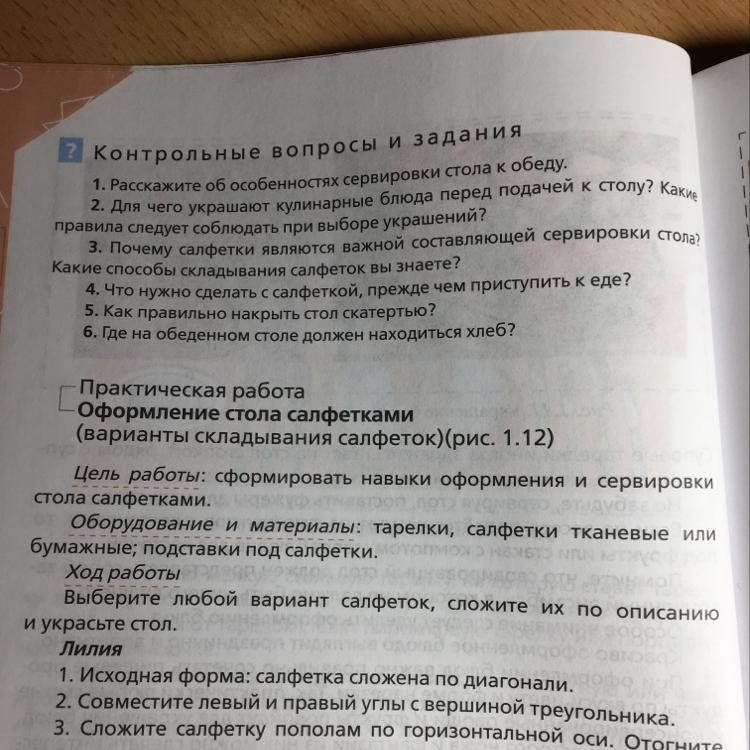 4. Салфетку, предназначенную для индивидуального пользования, следует развернуть и положить на колени.
