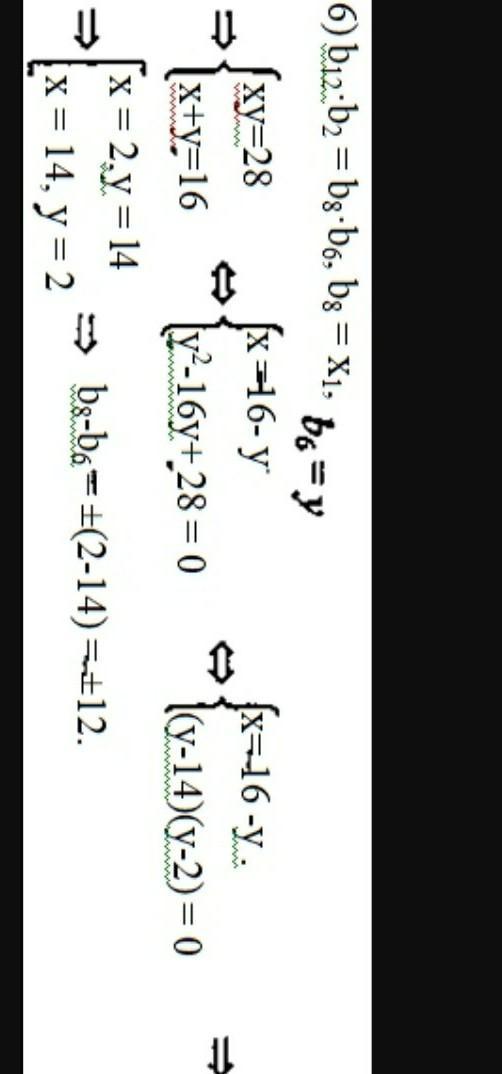 Найдите разность восьмого и шестого членов геометрической прогрессии, если их сумма равна 16. А произведение второго и двенадцатого членов этой прогрессии равно 28