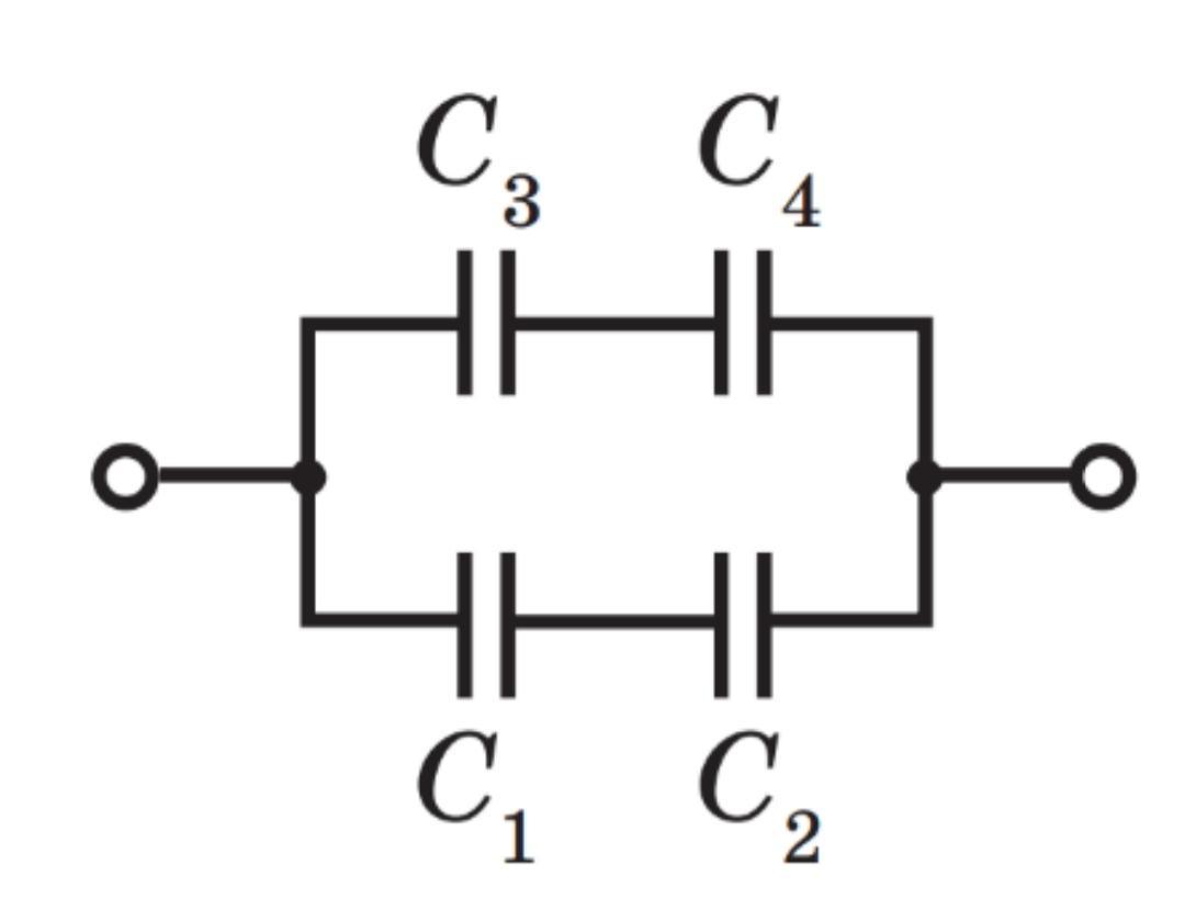 Так как С1 и С2, С3 и С4 соединены последовательно, вычислим общую ёмкость каждого из пар: