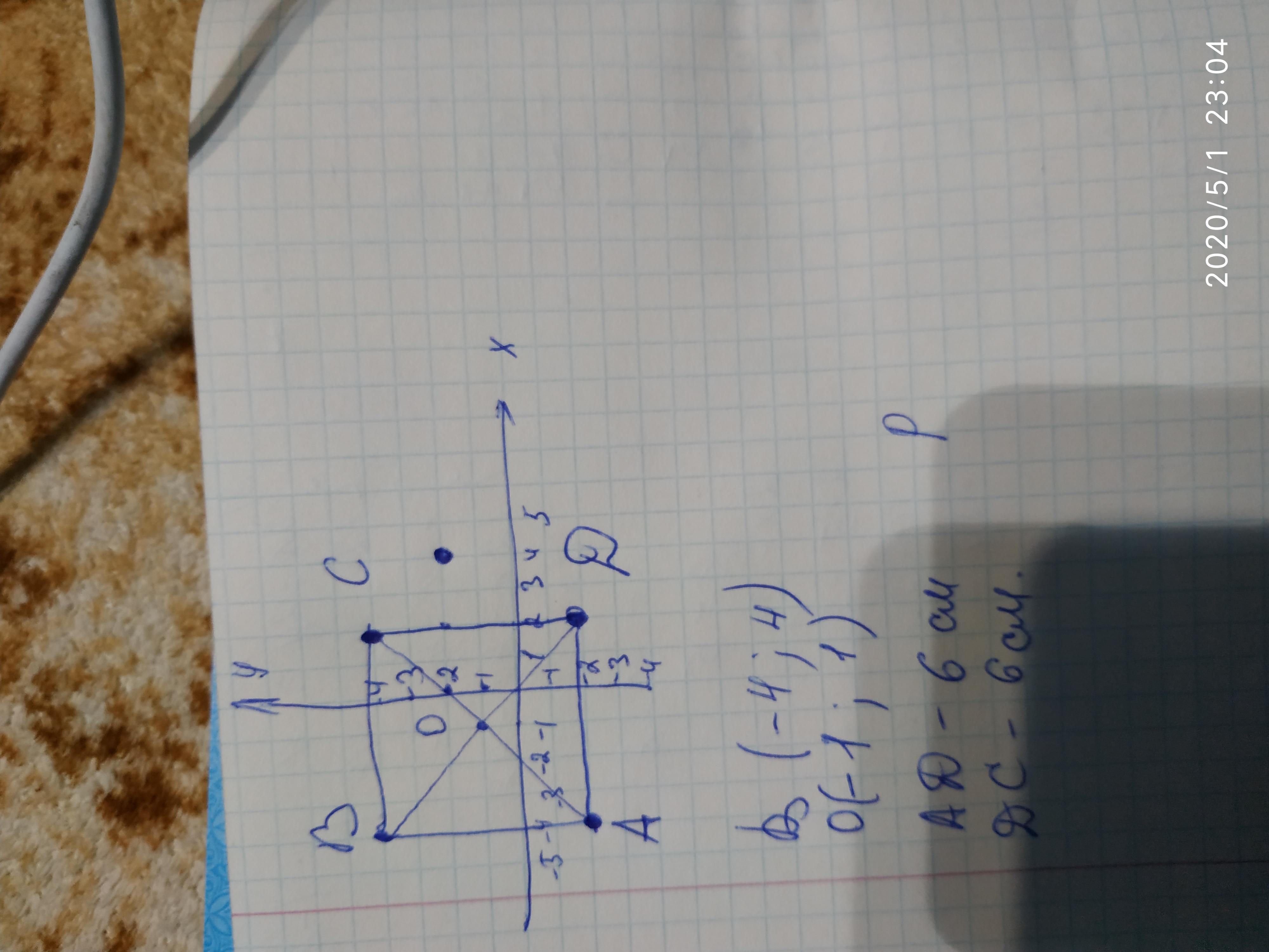 Г) Вычислите площадь и периметр прямоугольника, считая, что длина одного единичного отрезка координатных осей равна 1 см.