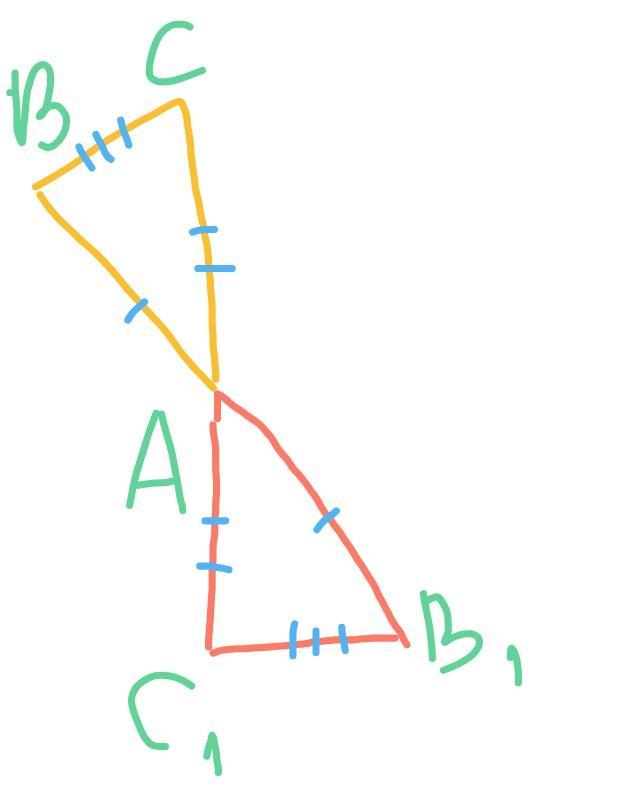 Начертите произвольный треугольник АВС. Постройте треугольник, симметричный ему относительно точки А.