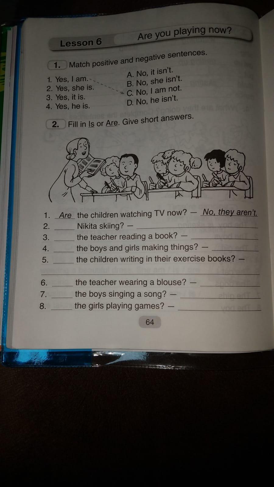 Перевод: 1. Дети смотрят телевизор сейчас? Нет.