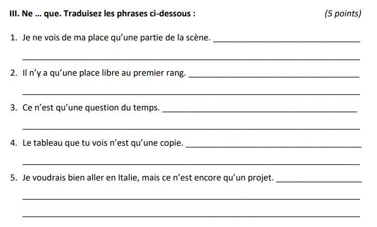 Ответ:1. Я вижу только часть сцены со своего места. 2. В первом ряду только одно свободное место. 3. Это только вопрос времени. 4. Картина, которую вы видите, является просто копией. 5. Я бы хотел поехать в Италию, но это пока только проект