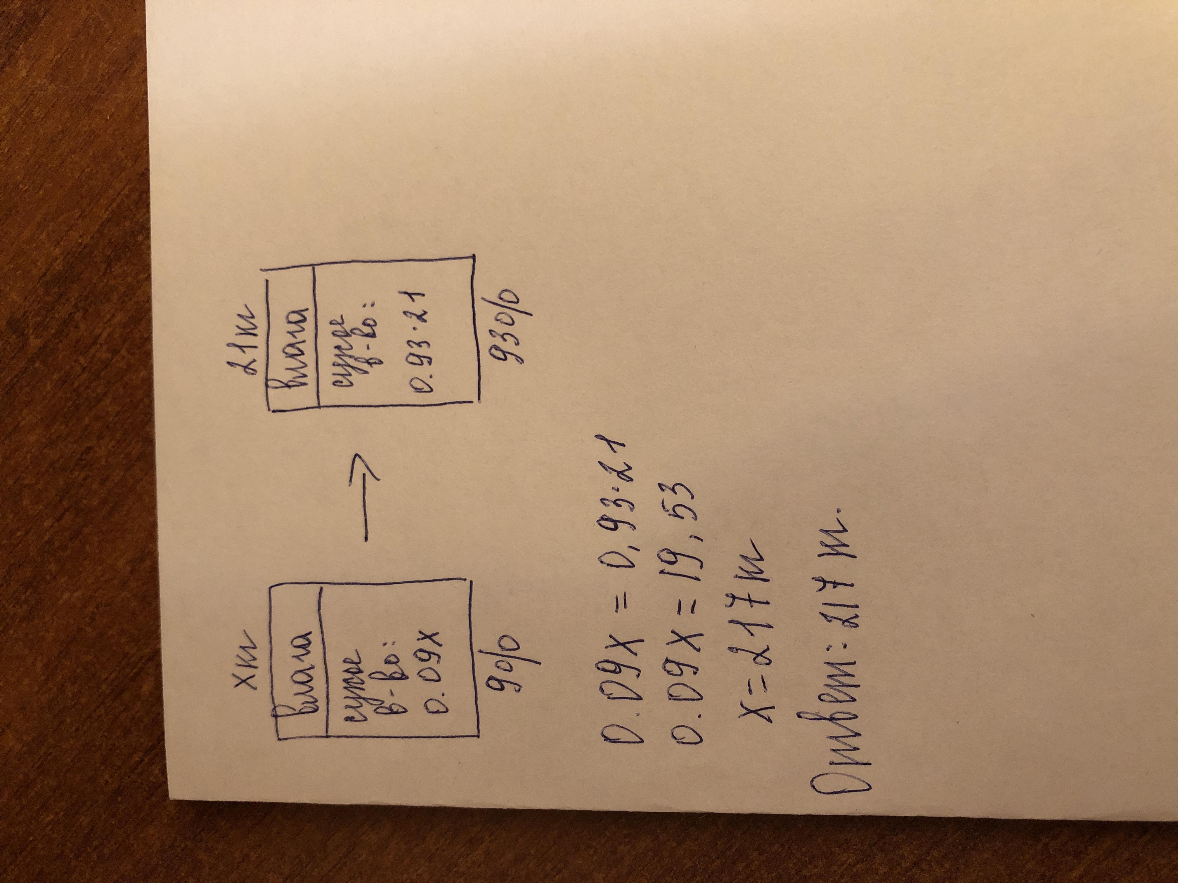 Виноград содержит 91% влаги, а изюм - 7%. Сколько кг винограда потребуется для получения 21 кг изюма?