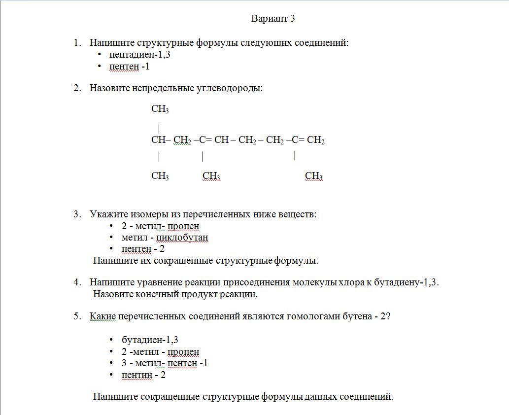 1. H2C = CH - CH = CH - CH3 пентадиен-1,3