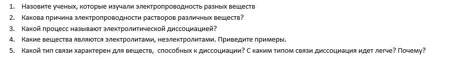 4. соли, сильные кислоты - электролиты (проводят электрический ток)