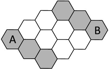 Пчела Марк может ходить только по серым ячейкам. Каким числом способов можно выбрать две ячейки и сделать их серыми, чтобы Марк мог пройти из ячейки А в ячейку В? * Варианты ответов: 3,4,5,6,7. Какой из этих вариантов?