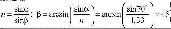 помогите пожалуста отдаю всё свои баллы, вот задача: Палка длиной 2 м воткнута в дно водоема глубиной 1 м. Определите длину тени на дне водоёма, если высота солнца над горизонтом равна 45°.