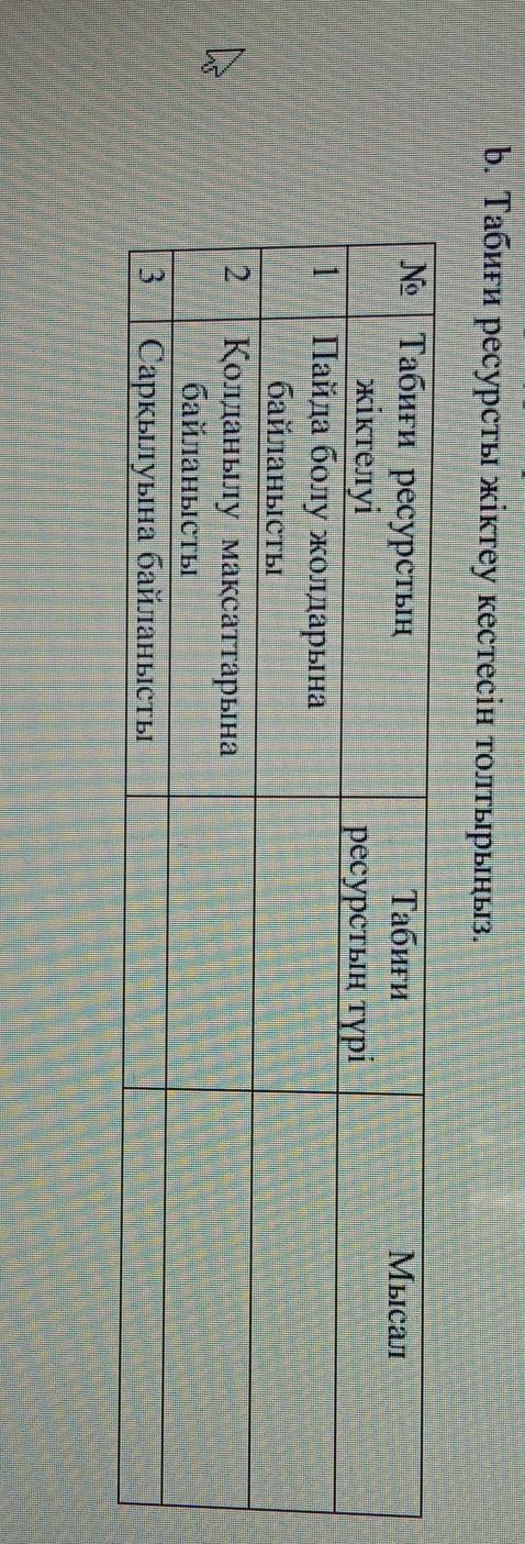 Табиғи ресурсты жіктеу кестесін толтырыңыз ​