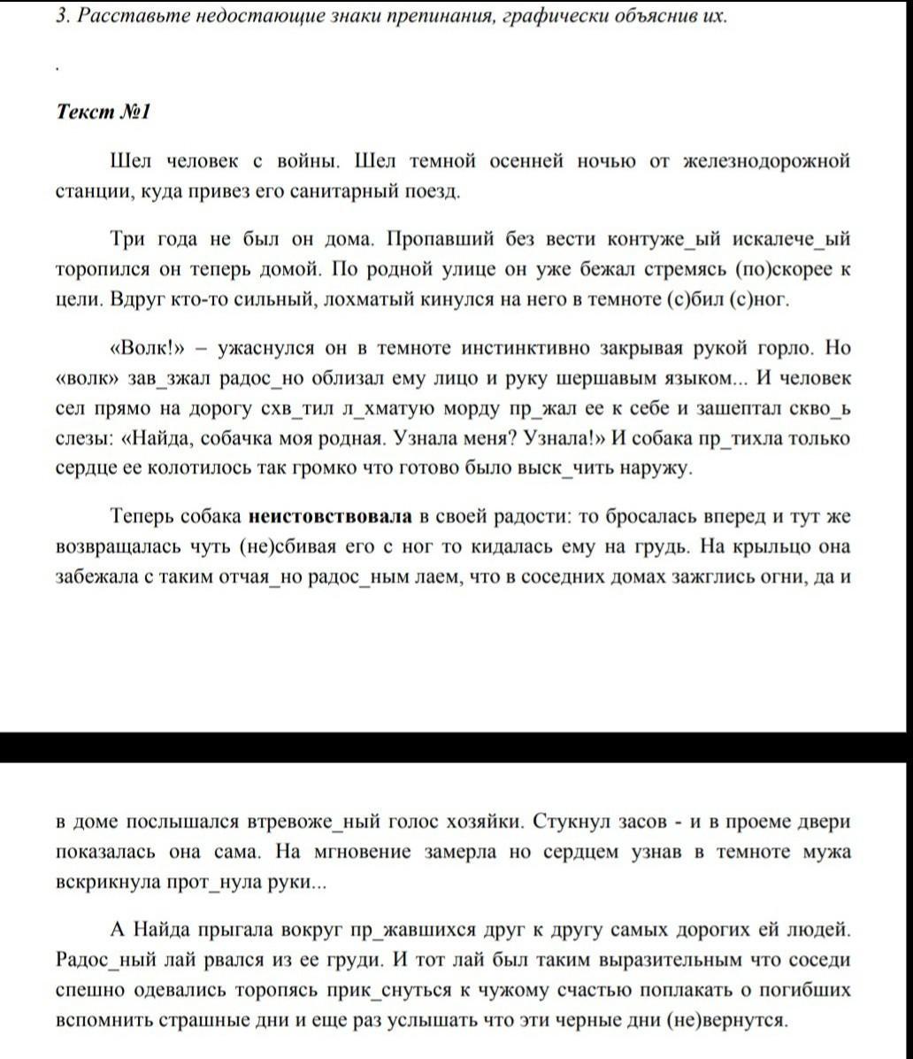 Три года не был он дома. Пропавший без вести, контуженный, искалеченный, торопился он теперь домой. По родной улице он уже бежал, стремясь поскорее к цели, как вдруг, кто-то сильный, лохматый кинулся на него в темноте, сбил с ног. «Волк!» – ужаснулся он в темноте, закрывая рукой горло. Но «волк» завизжал, облизал ему лицо, руку языком...