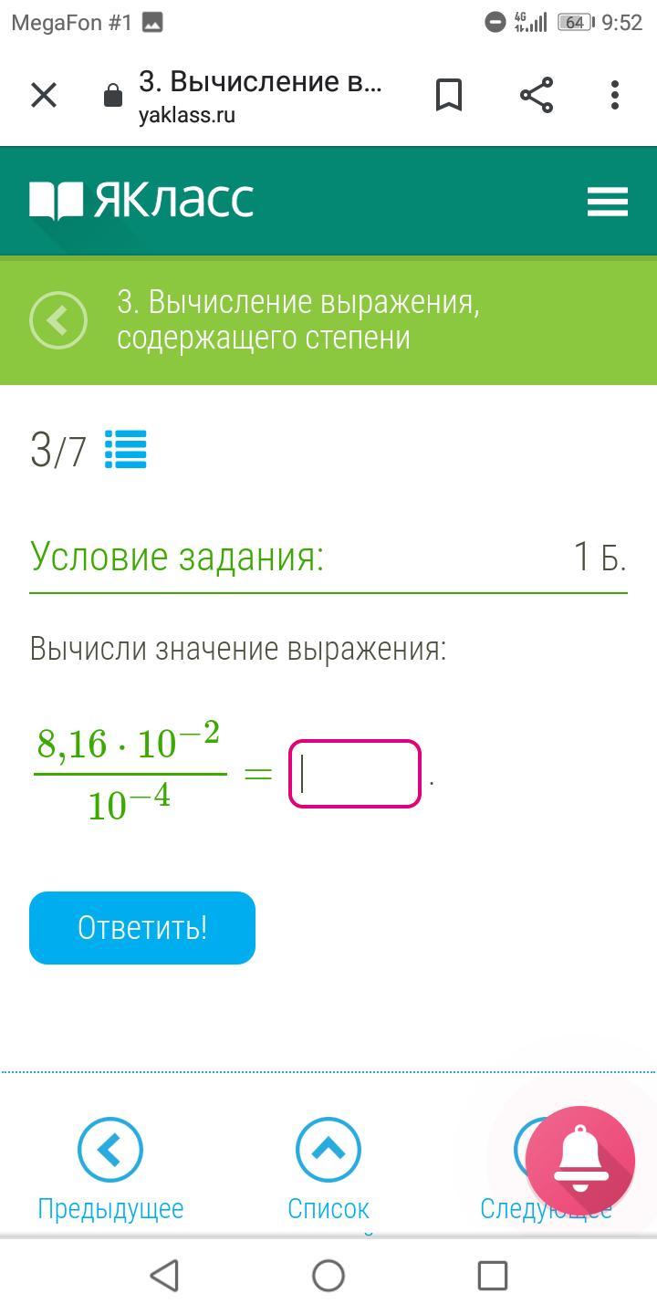 перепишем условие с использованием знаний об отрицательном показателе, т.е., поднимая степень в числитель /с отрицательным показателем/ она становится степенью с противоположным показателем, 8.16*10⁻²*10⁴=8.16*10⁻² ⁺⁴8.16*100=816