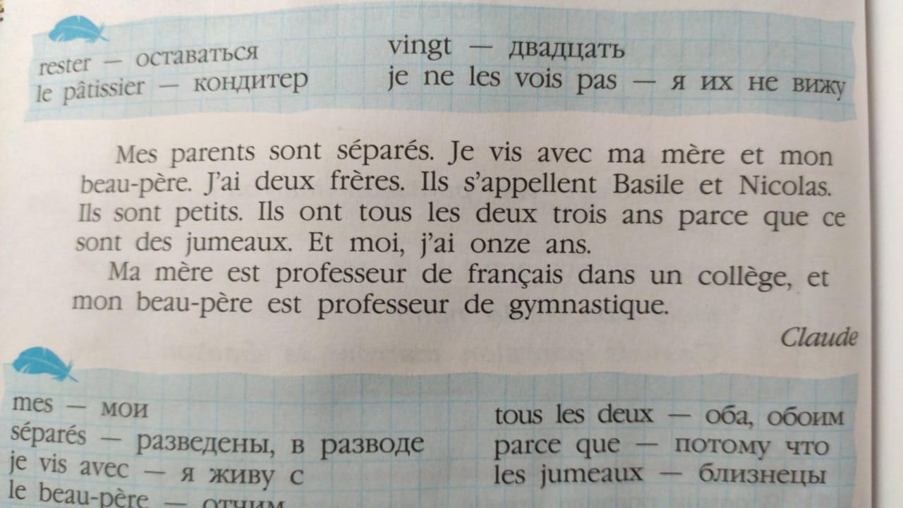 Мэ паран сон сэпарэ. Же Ви авек ма мэр э сон бё пэр. Жэ до фрэр. Иль сапель Базиль э Николя. Иль сон петит. Иль зон ту ле до труа ан парс кё сэ сон дэ жумо. Э муа, жэ онзан.