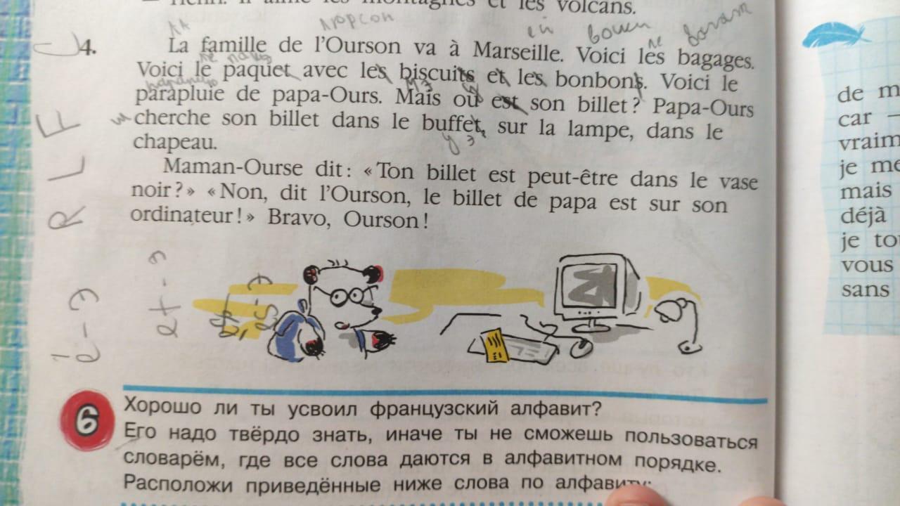 Мама Урс ди: "Тон бийе э пётэтр дан Ле ваз нуар?" "Но, ди Люрсон, Ле бийе Дэ папа э сюр сон ординатор!". Браво Урсон