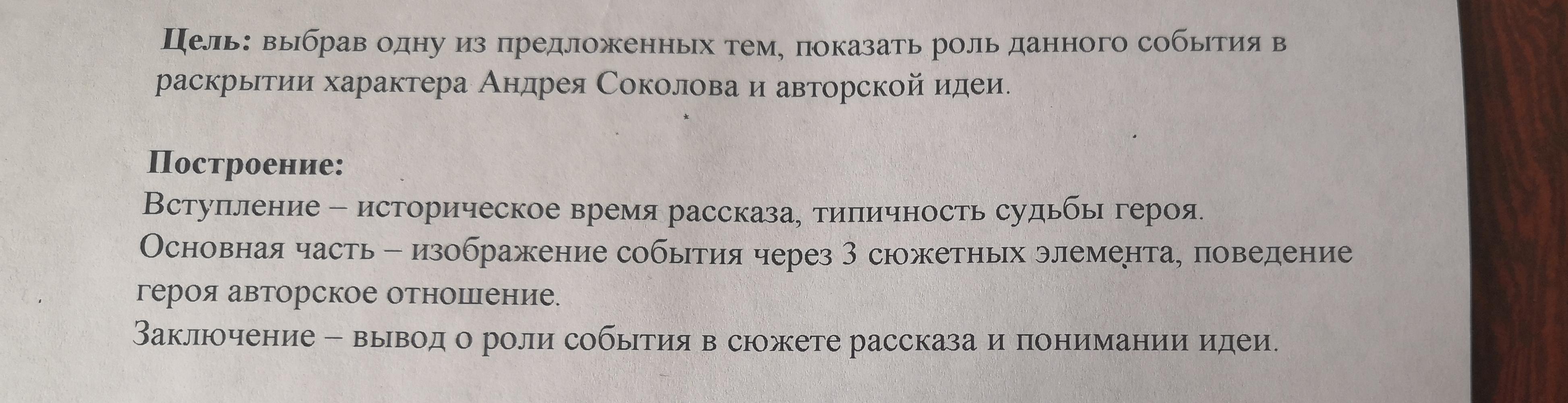 Сочинение на тему Расставание с семьёй по произведению Шолохова "Судьба человека", где кульминацией будут проводы на фронт, а развязкой известие о гибели семьи и возвращение героя домой после войны.