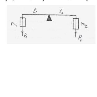 на рисунке ниже нарисованный рычаг которому палубе стороны подвешены груза без права груза p2=100h расстояние от точки опоры до точки подвешивания груза(плечо силы) 1(во второй)=2м масса левого груза м1 =5 кг