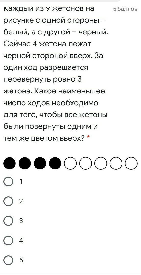 4:3=1 и осталось 1 , то есть ещё 1 ход 1+1=2 5:3=1 и осталось два, то есть ещё 1 ход 1+1=2