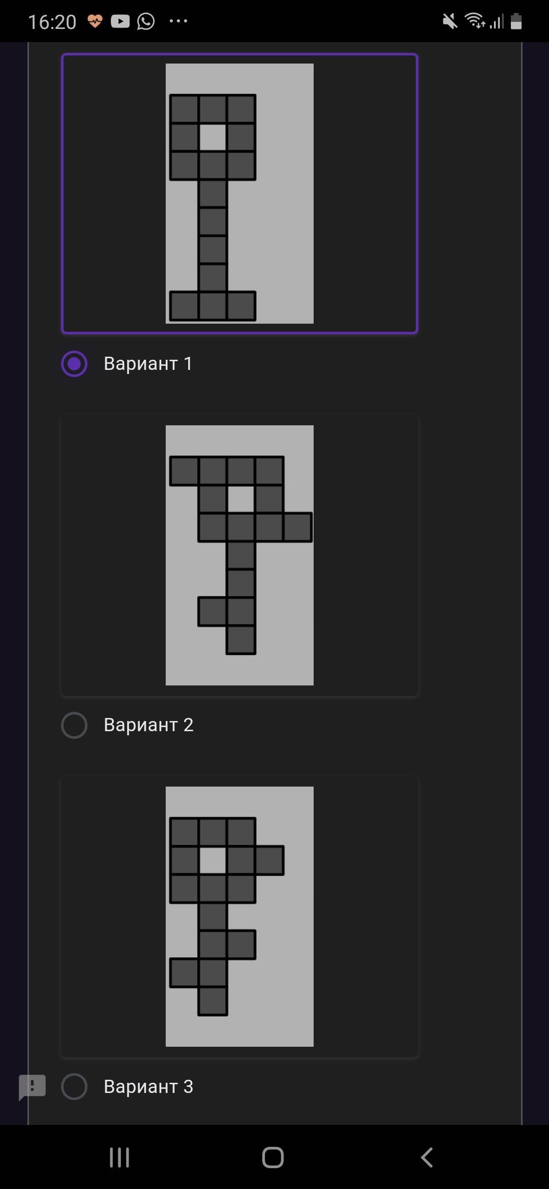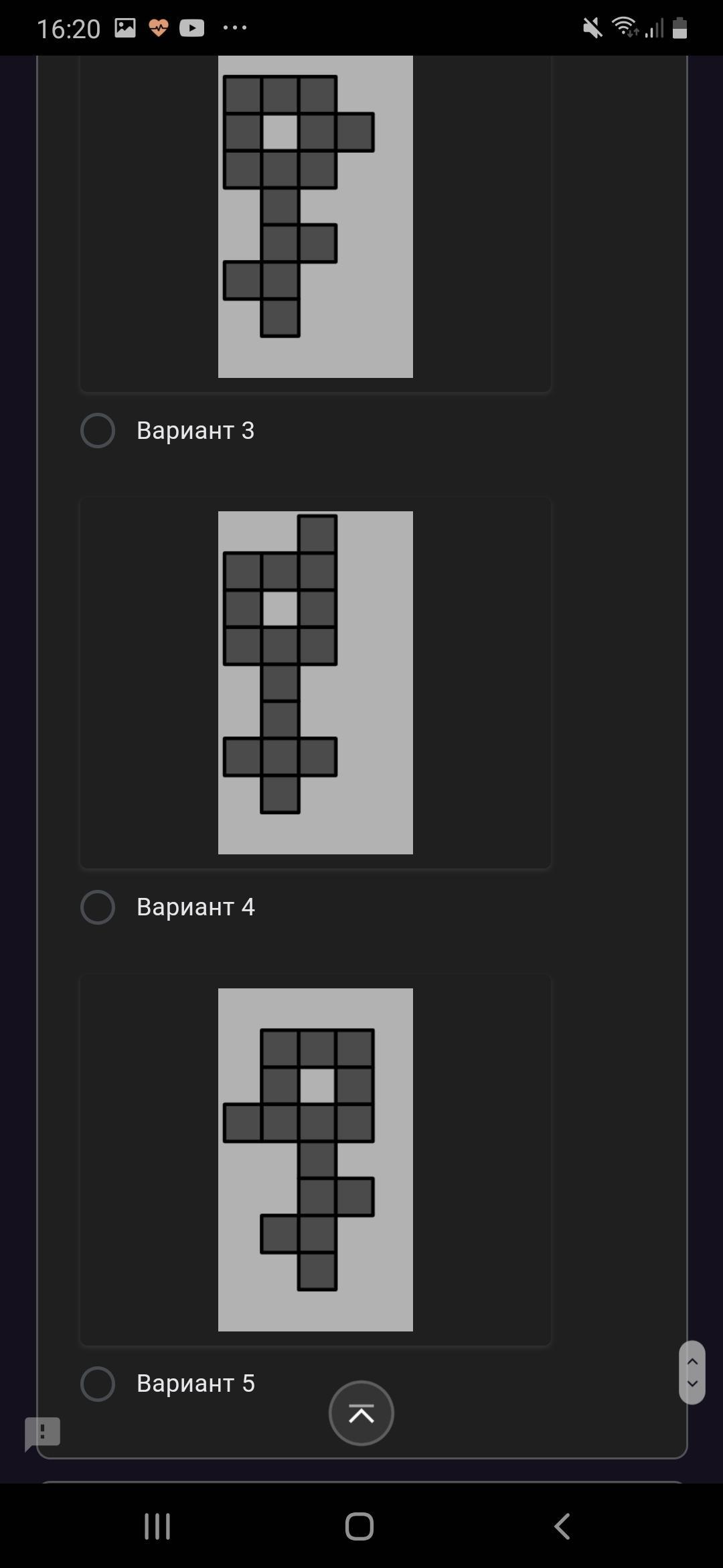 Какой из этих «ключей» нельзя разрезать на три разных фигуры из 5 закрашенных квадратов каждая? *