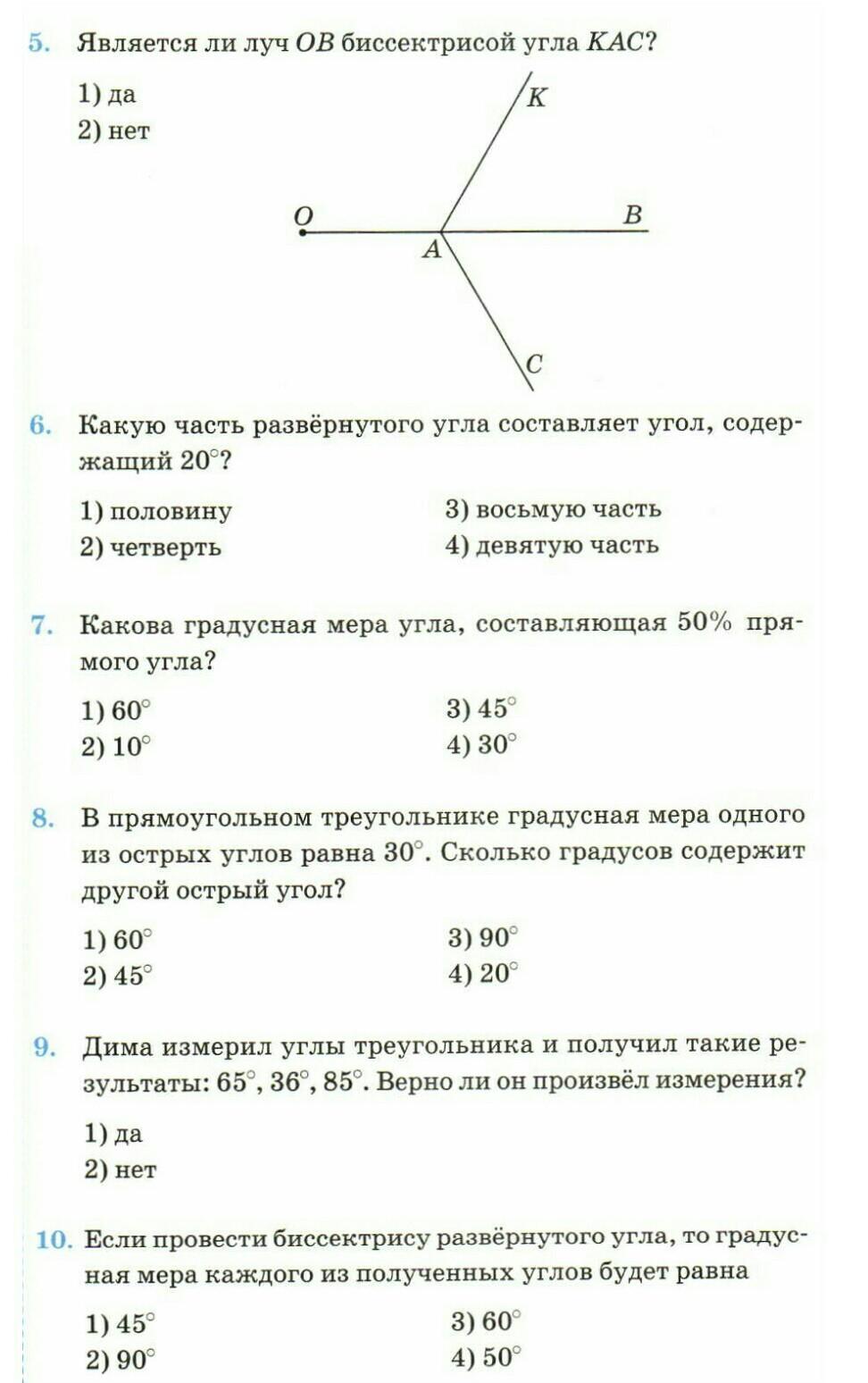 10) Биссектриса делит угол пополам. 180:2=90°.