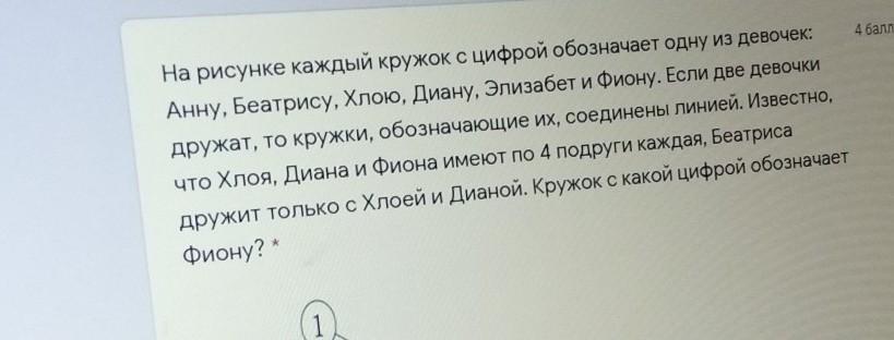 дружит только с Хлоей и Дианой. Кружок с какой цифрой обозначает