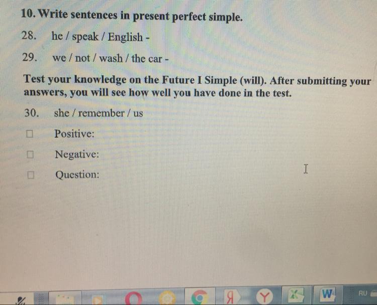 10. Write sentences in present perfect simple.
