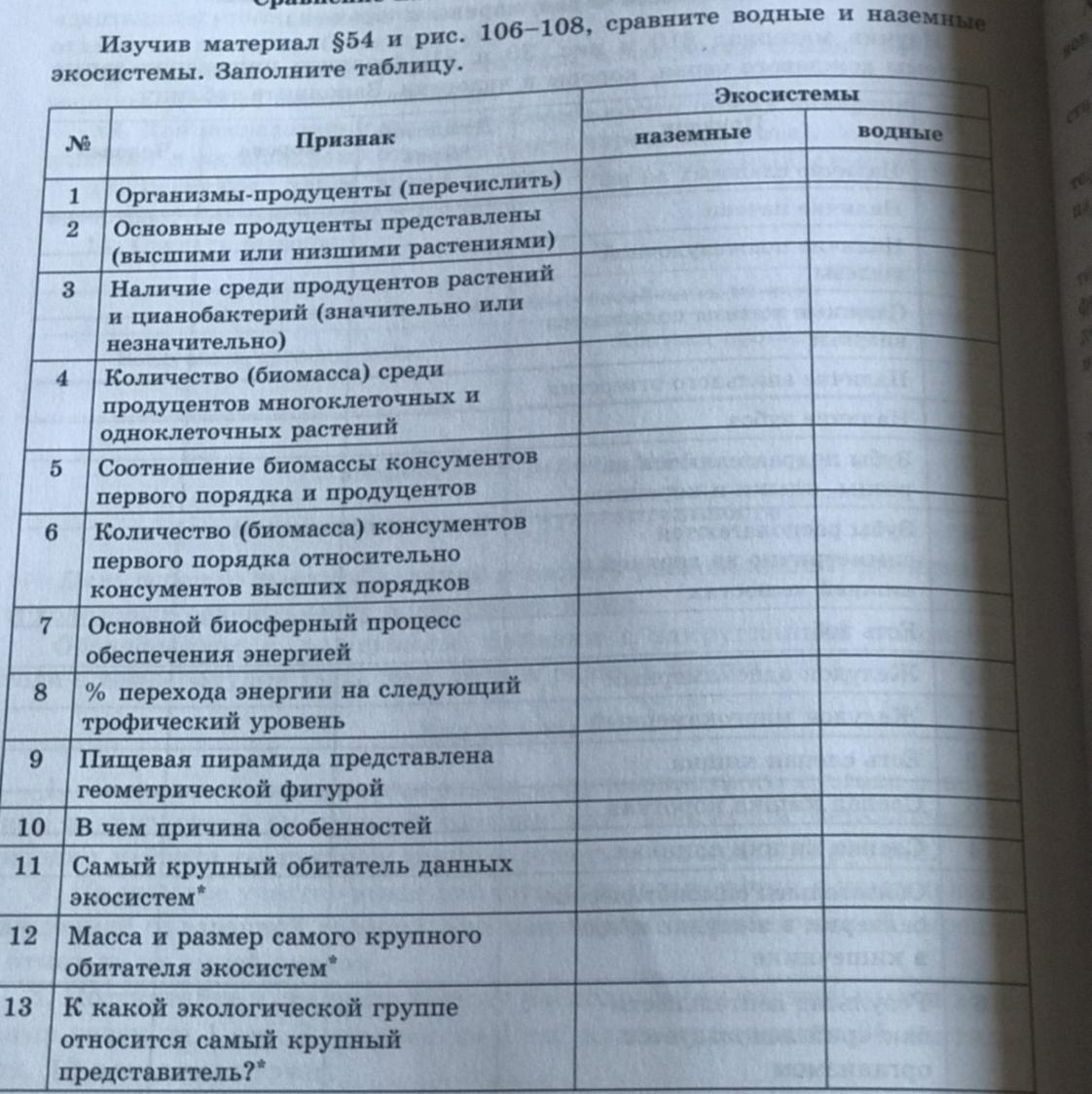 Помогите пожалуйста с биологией, нужно заполнить таблицу.