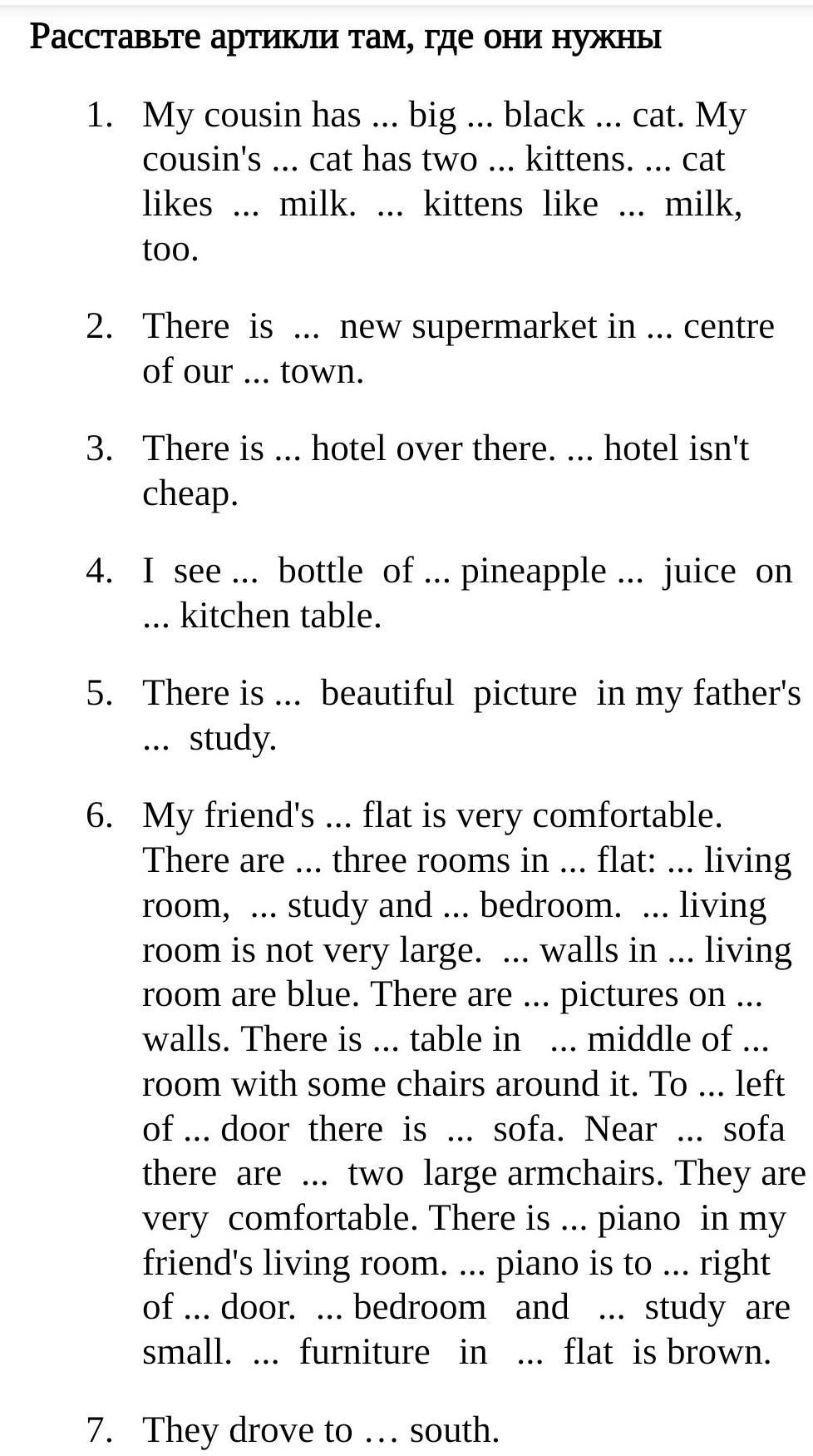 There are three rooms in a flat: a living room, study and bedroom. a living room is not very large. the walls in the living room are blue. There are pictures on the walls. There in a table in a middle of the room with some chairs around it. to a left of the door there i a sofa. Near the sofa there are two large armchairs. They are very comfortable. There is a piano in my friend's living room. A piano is to right of the door. The bedroom and the study are small. the furniture in a flat is brown.