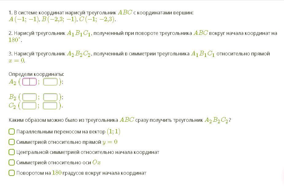 1. В системе координат нарисуй треугольник ABC с координатами вершин: